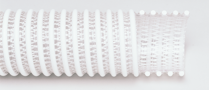 | Spiralite 6200 BRAIDED CLEAR PVC CORRUGATED HOSE HOSE APPEARANCE/CONSTRUCTION: Clear PVC with corrugated white helix containing a braided reinforcement. BENEFITS: -Clear wall allows easy inspection of material flow -Smooth inside prevents material blockage. -Exposed helix, less resistance to dragging. -Braided wall handles higher pressures. -Braided construction reduces elongation during applications. GENERAL APPLICATIONS: -General suction for water and light chemical solutions TEMPERATURE RANGE: -10°F TO +130°F STANDARD LENGTHS: 1" thru 6" is 100 feet 8" and above is 20' 25' 30' 35' 40' |