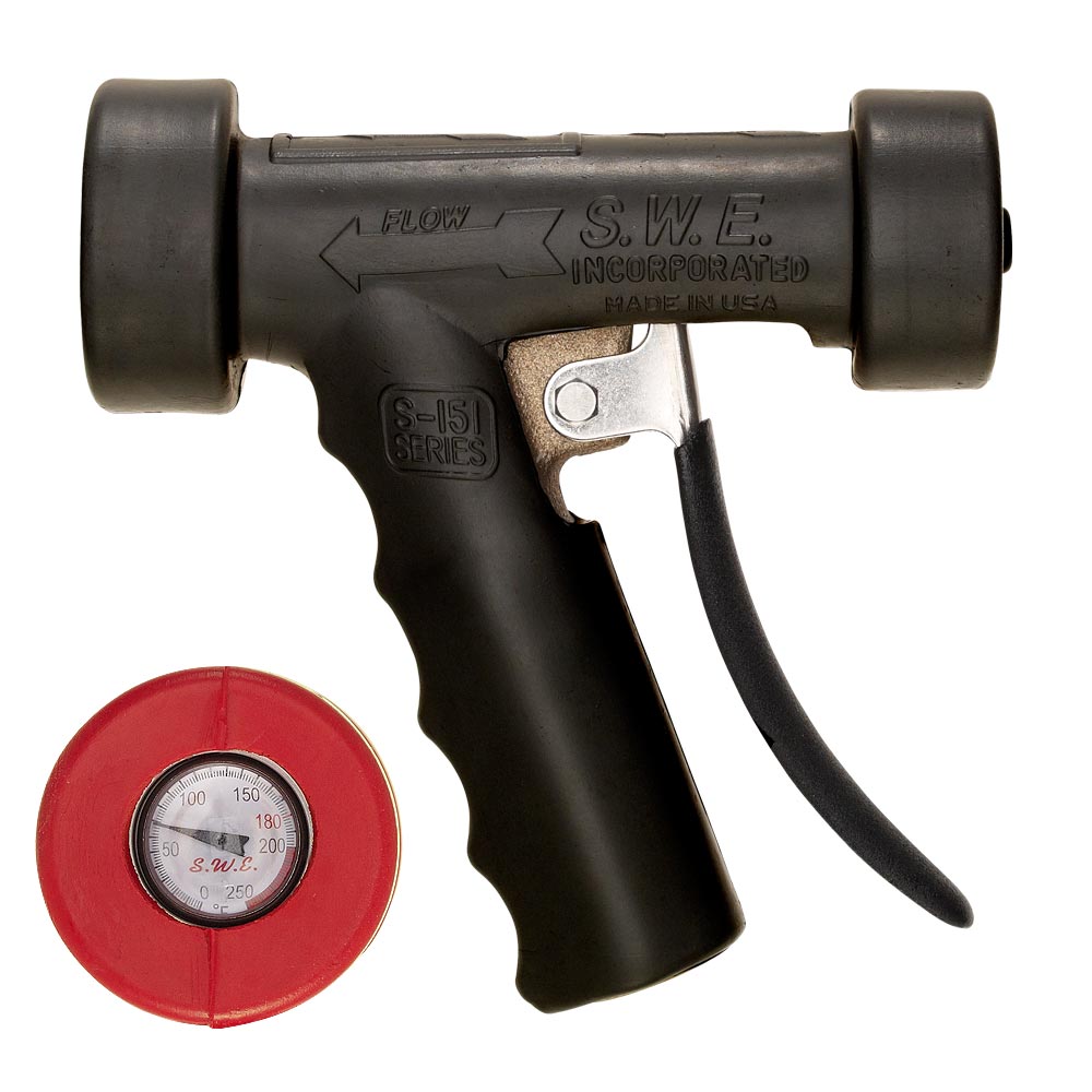 dial thermometer located at the rear of the nozzle for accurate and continual monitoring of the water temperature. The
