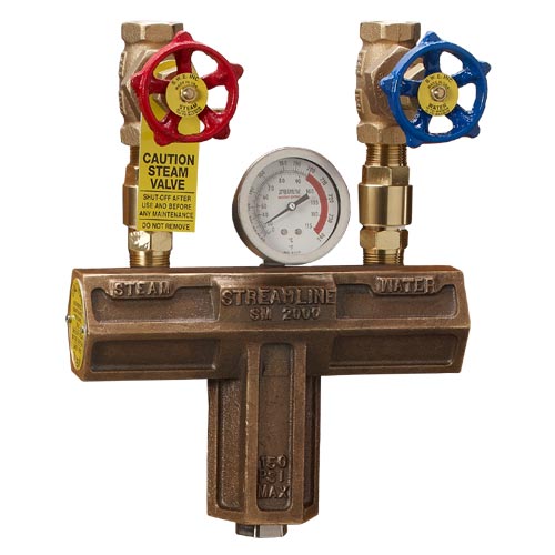 STEAMASTER 2000N Steam and Cold Water Mixing Station, Bronze Construction, Bronze Globe Style Control Valves, In Line Check Valves, Stainless Steel Temperature Gauge. Same as the STEAMASTER 2000. (LESS HOSE, NOZZLE, MOUNTING PLATE, HOSE RACK AND HARDWARE